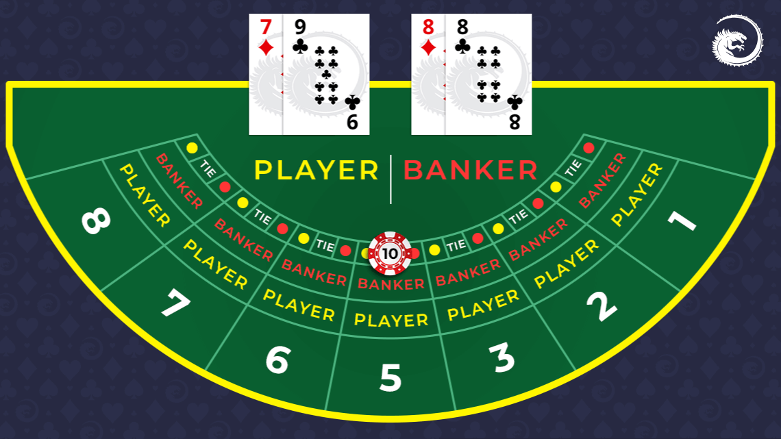 Ein Unentschieden bei Baccarat entspricht einem Push bei Blackjack. Ein Unentschieden wird erklärt, wenn Spieler und Bankier dieselbe Kartensumme haben. In diesem Fall verlieren Sie Ihren Einsatz nicht – er bleibt für die nächste Runde auf dem Tisch.