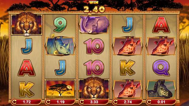 Symbole bilden immer dann Gewinnkombinationen, wenn gleiche Zeichen auf nebeneinanderliegenden Rollen (beginnend links außen) auftauchen. Mindestens zwei (beim Löwen) oder drei (bei allen anderen Zeichen) Symbole nebeneinander sind für Gewinnausschüttungen nötig. - Hochwertige Symbole: Der Löwe (höchstauszahlendes Jackpot-Symbol) und alle anderen Tiere der Savanne.