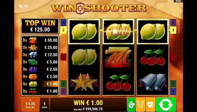 Die Regeln von Win Shooter sind denkbar einfach, denn die Zählweise ist klassisch und durch die 3 Walzen mit jeweils 3 Symbolen sollte es jedem Spieler leicht fallen, die Gewinnkombinationen sofort zu erkennen. Jeweils drei gleiche Symbole entlang einer der 5 Gewinnlinien sorgen für einen Gewinn. Die Symbole haben unterschiedliche Wertigkeiten und je höherwertig das Symbol, desto höher der Gewinn: