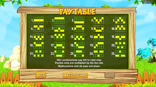 All values in the paytable are fixed. Winnings are calculated by multiplying your line bet by the triggered payout value on the paytable.