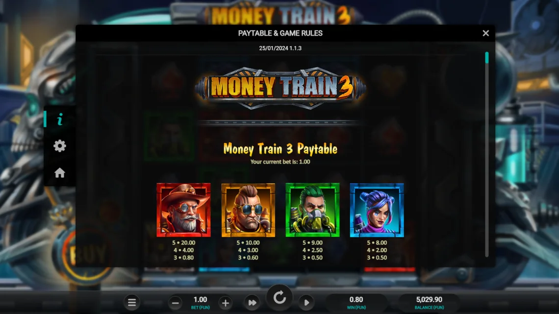 Money Train 3 Symbols and Paytable