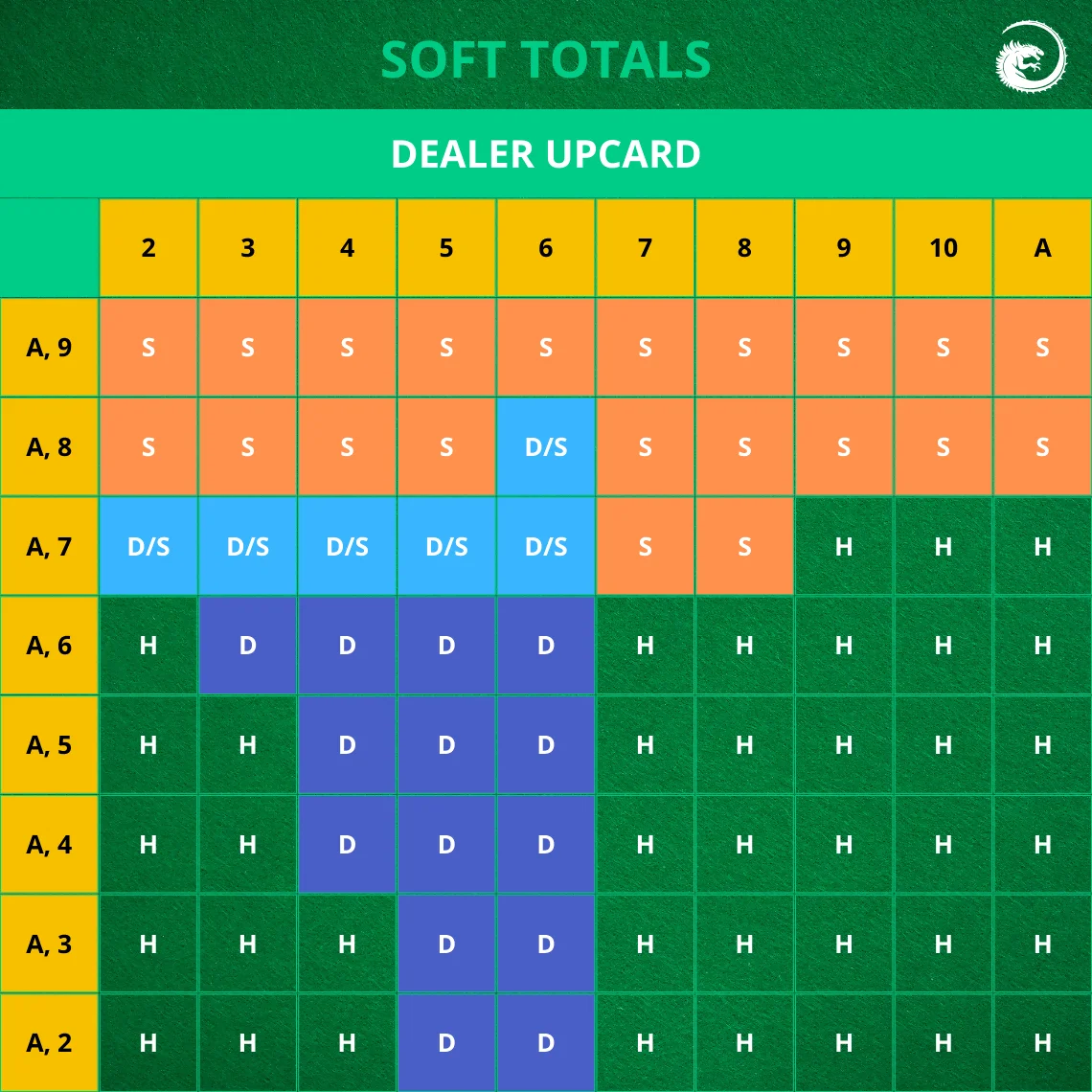 - Hit (H) or Stand (S): After considering all other choices above, then decide whether to hit or stand. This is where strategy charts come in handy.