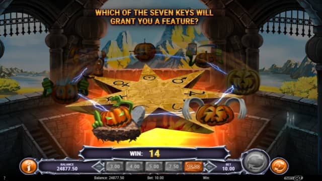 The Helloween slot game comes injected with 8 impressive bonuses and features, most of which are accessed via the Keeper of the Seven Keys Feature Wheel. The Sevens Keys feature wheel is triggered when you land scatter symbols on reels 1, 3 and 5. Thereafter, you’ll spin the wheel to win any of the free spins bonuses listed below. Note that all the rounds have 5 free spins, except for Helloween Free Spins, which has 7. Here’re the Helloween slot features:
